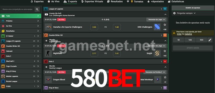 A aposta 580bet oferece aos jogadores a experiência mais conveniente de apostas em eSports!